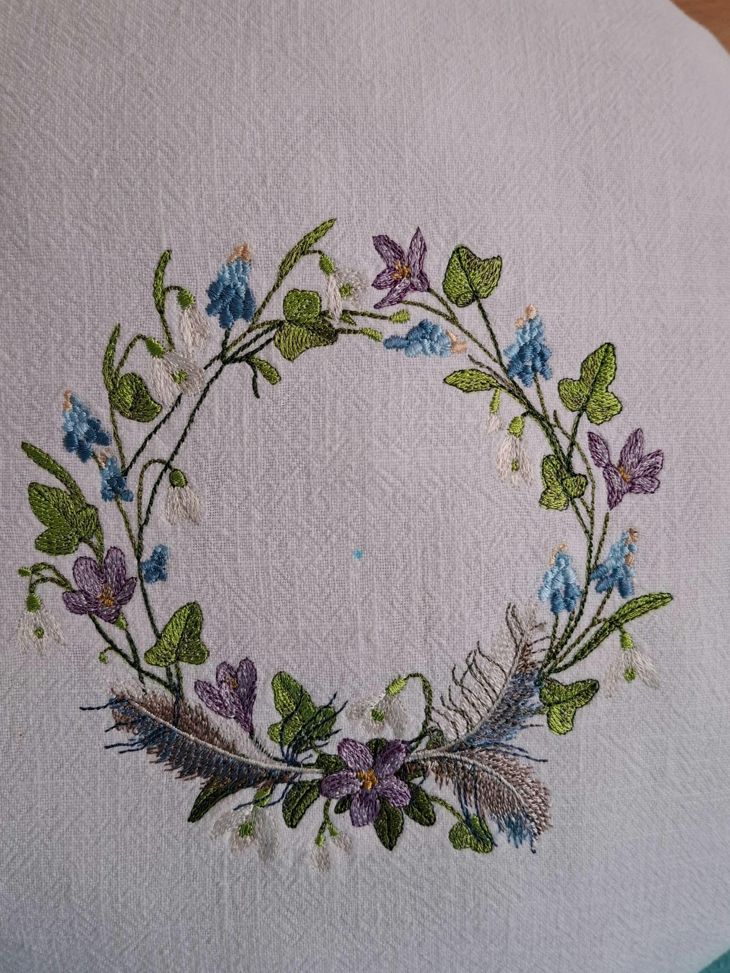 Der Frühblüherkranz ist ein detailreiches, aufwendiges Stickmotiv, welches den Zauber des frühen Frühlings einfängt. Zarte Blüten, feines Blattwerk und eingearbeitete Federdetails verbinden sich zu einem harmonischen Kranz mit natürlicher Leichtigkeit. Die ausgewogene Farbgestaltung und die vielen kleinen Elemente verleihen dem Motiv Tiefe und eine besondere Eleganz.